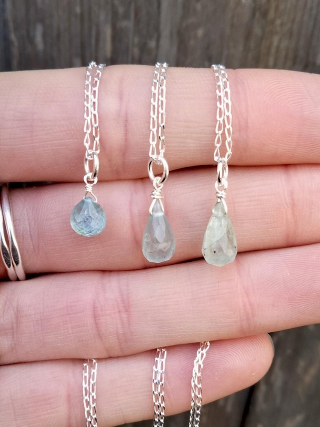 Beautiful Aquamarine pendants ranging from a majestic sky blue to a royal ocean turquoise.