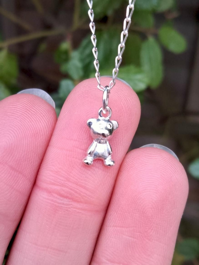 The cutest necklace you will ever own - tiny sterling silver teddy on an 18" chain. This necklace is the perfect stocking filler for anyone!